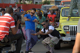 On Sunday, Darey, Flavour and their crew hit Broad Street, Marina Lagos, for the video shoot of Darey's new single, Sisi Eko remix featuring Flavour.