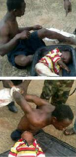 According to popular blogger Linda Ikeji, this man was caught at Tipper garage near Gwarimpa in Abuja yesterday with a dead baby stuffed in a suitcase. They said he was arrested on a tip off… but another source said that the conductor of the bus he entered asked him to bring his suitcase so it can be stored properly and the man vehemently refused. The suspicious conductor asked him what was inside the suitcase and he refused to say. As the man tried to leave the bus, the conductor and others seized the suitcase from him and found the dead boy inside.